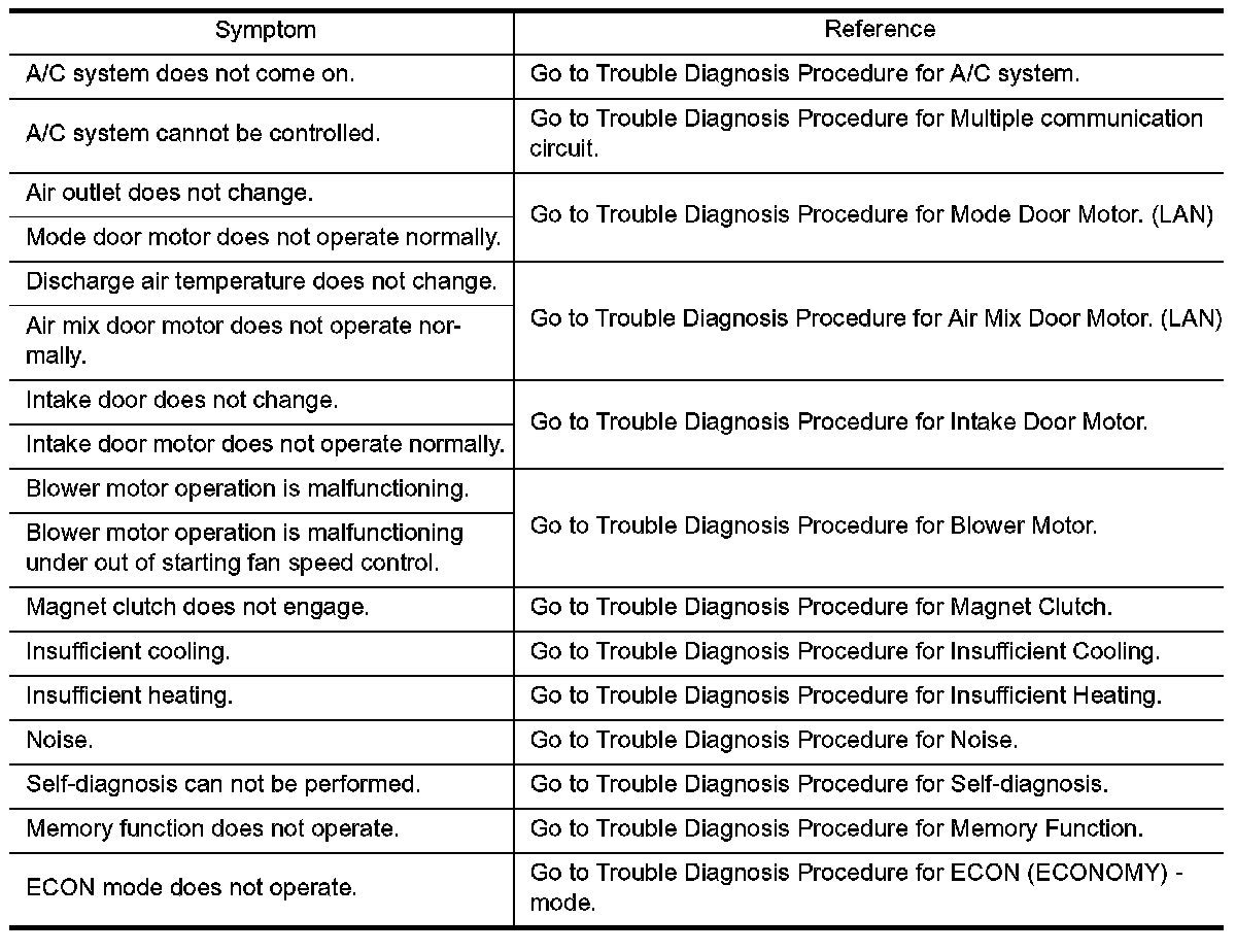 Symptom Table: