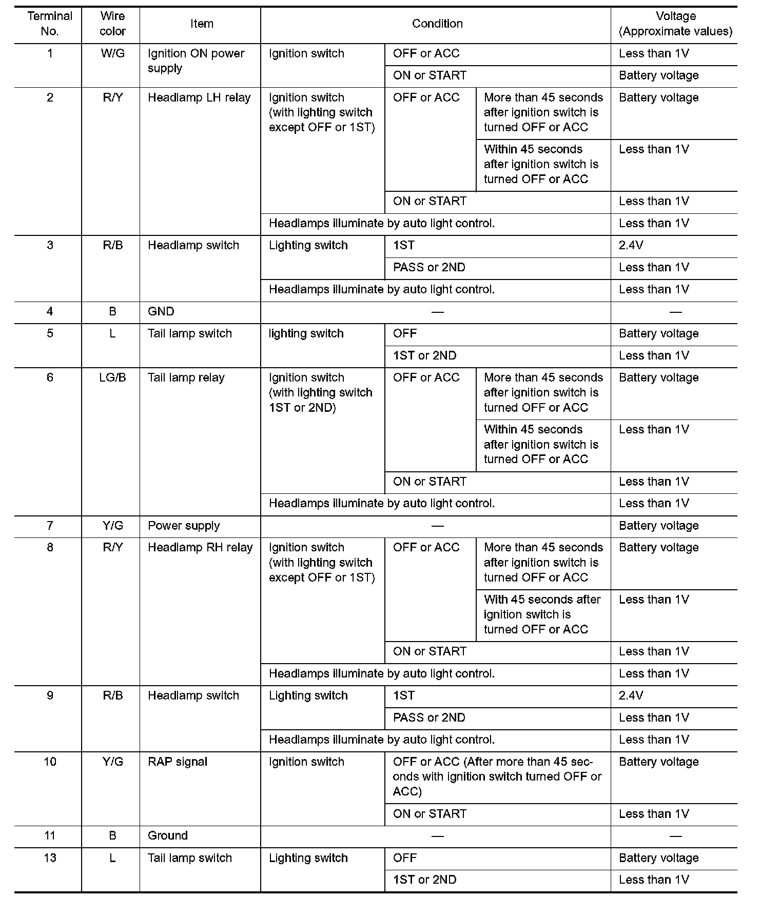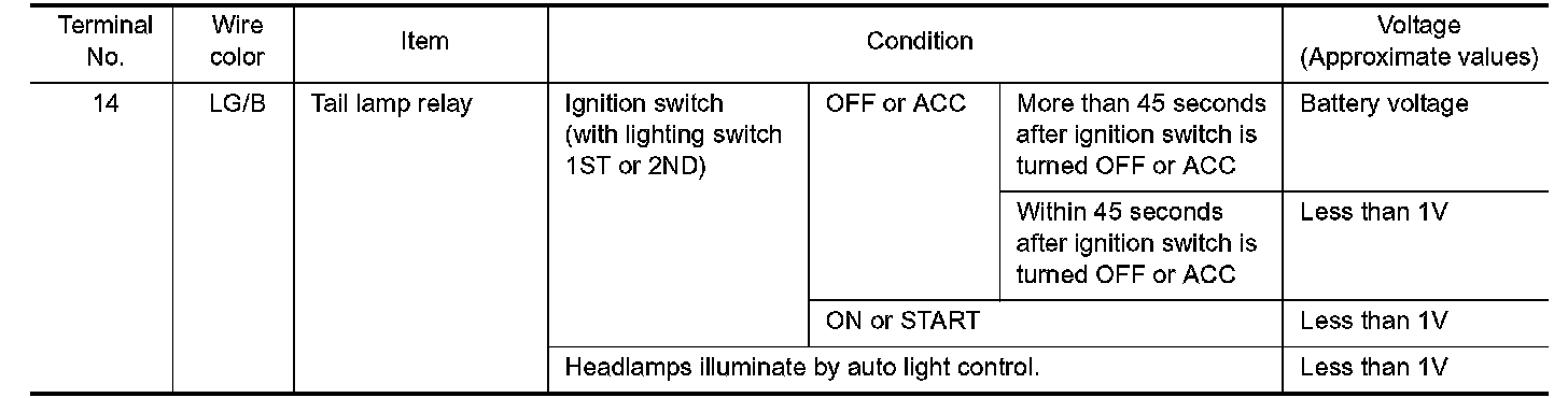 FOR USA - Terminals And Reference Value For Battery Saver Control Unit Part 1: