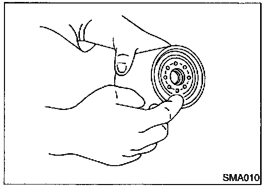 CAUTION: The oil filter is provided with a relief valve. Use genuine NISSAN oil filter or equivalent.