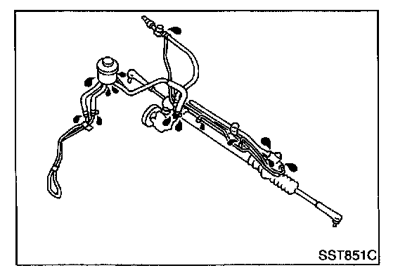 - Check rack boots for accumulation of power steering fluid.