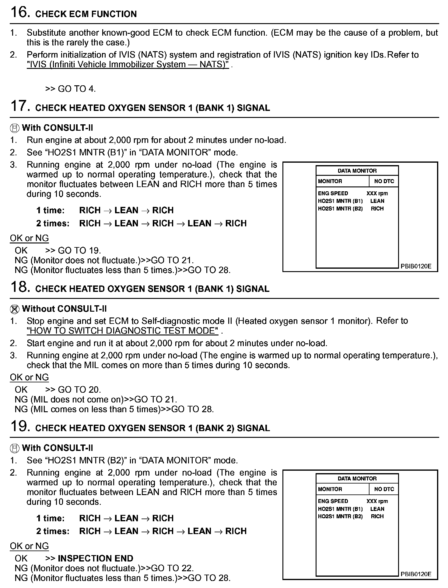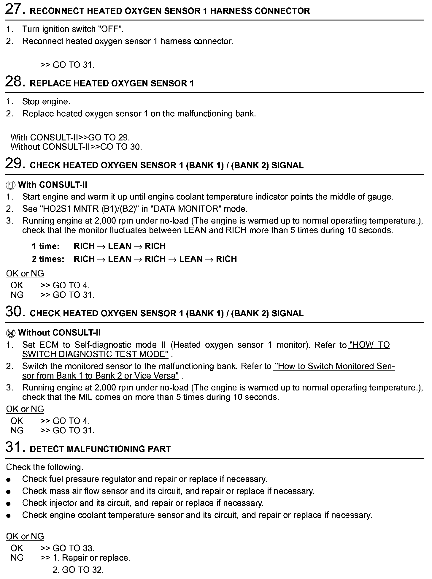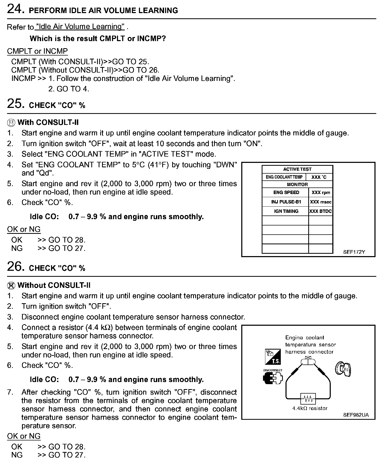 2. On air conditioner equipped models, checks should be carried out while the air conditioner is "OFF".