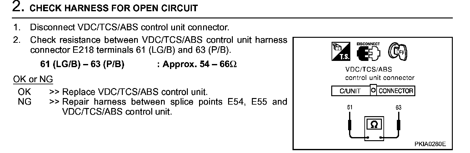 VDC/TCS/ABS Control Unit Circuit Check Step 2: