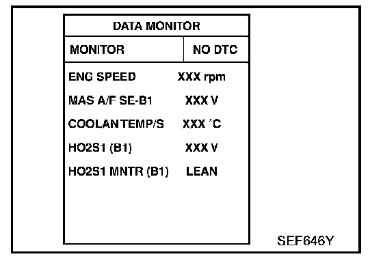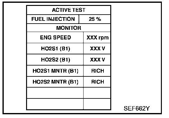3. Select "FUEL INJECTION" in "ACTIVE TEST" mode, and select "HO(2)S(2) (B1)/(B2)" as the monitor item with CONSULT-II.