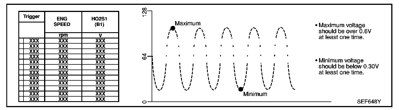"HO(2)S(2) (B1)/(B2)" should be below 0.48 V at least once when the "FUEL INJECTION" is ±25%.