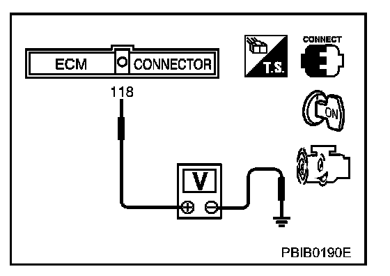 3. Check voltage between ECM terminal 118 and ground under the following conditions.