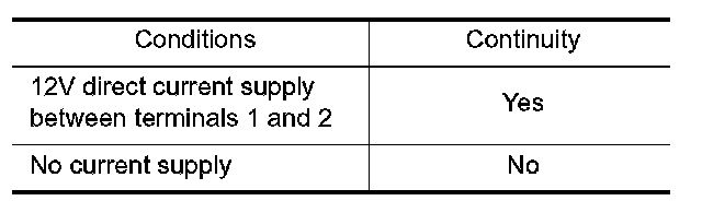 1. Apply 12 V direct current between relay terminals 1 and 2.