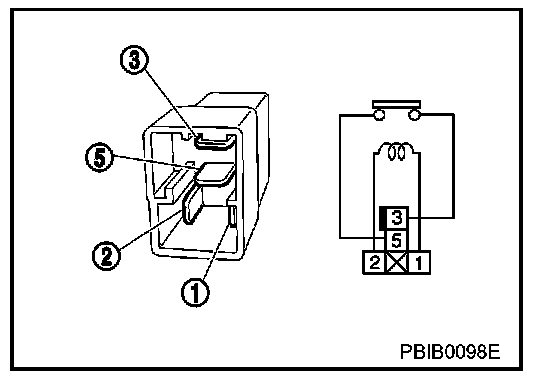2. Check continuity between relay terminals 3 and 5.