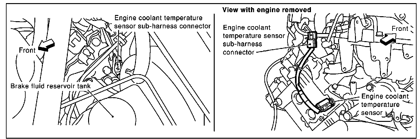 Engine Coolant Temperature Sensor Sub-harness Connector, Front, Brake Fluid Reservoir Tank: