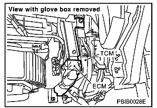 1. ECM is located behind the glove box. For this inspection, remove glove box.