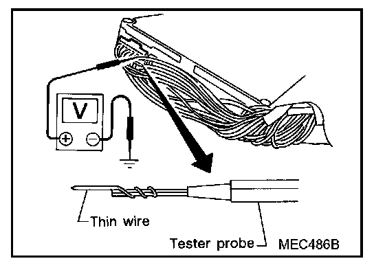 3. Perform all voltage measurements with the connector connected. Extend tester probe as shown to perform tests easily.