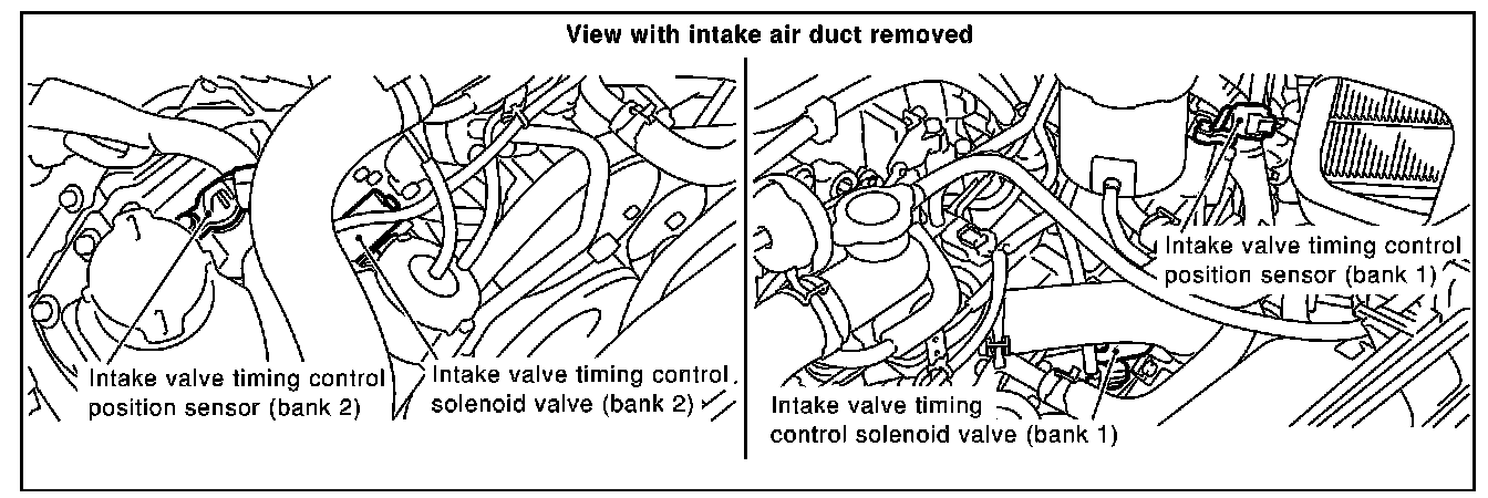Intake Valve Timing Control Position Sensor (bank 2), Intake Valve Timing Control Solenoid (bank 2), Intake Valve Timing Control Position Sensor (bank 1), Intake Valve Timing Control Solenoid Valve (bank 1):