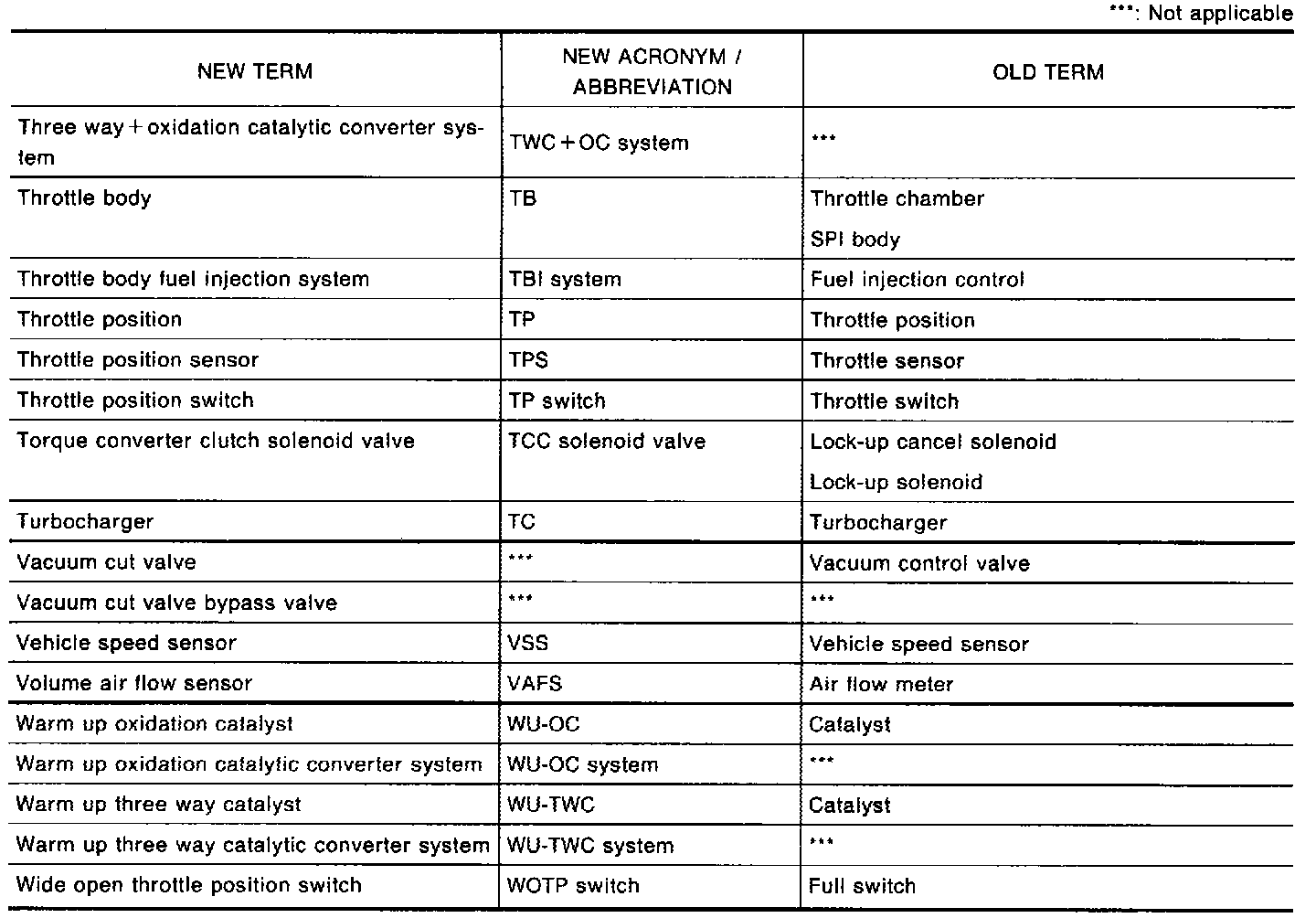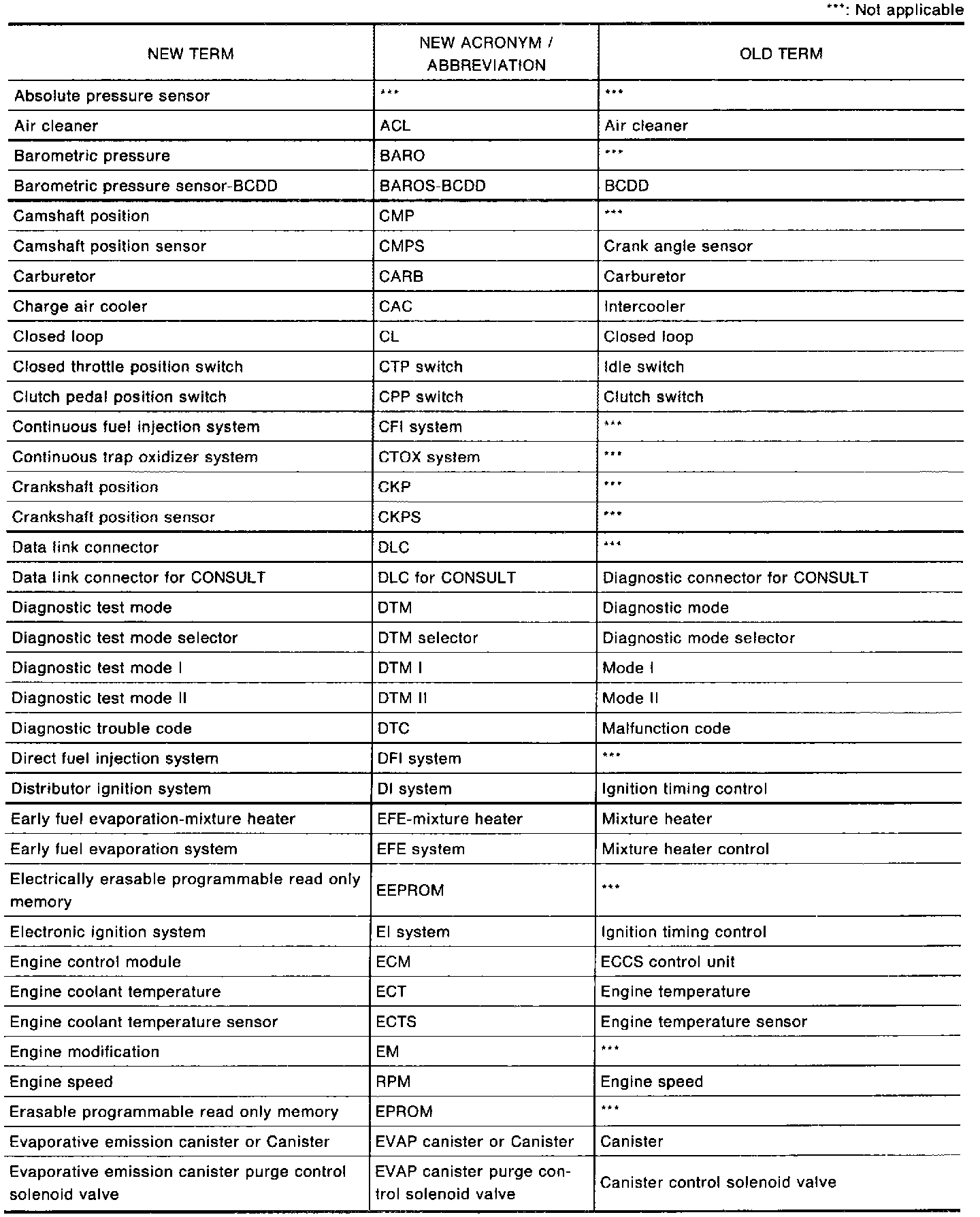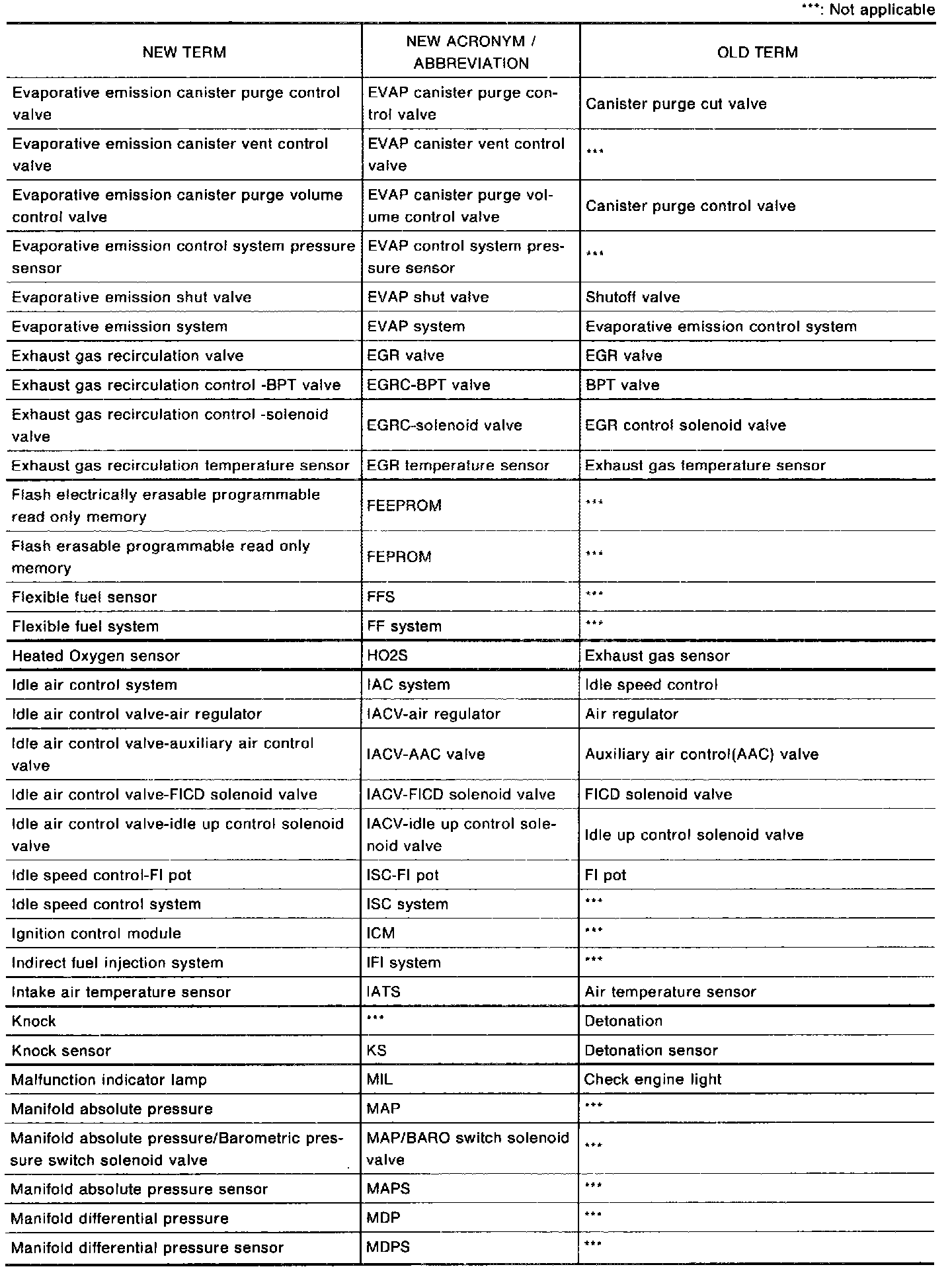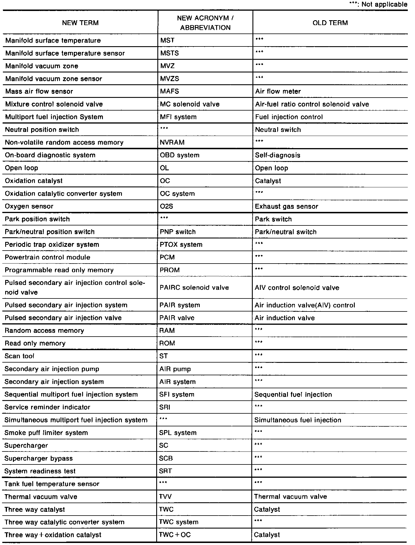NOTE: All emission related terms used in this database in accordance with SAE J193O are listed. Accordingly new terms, new acronyms/abbreviations and old terms are listed in the chart.