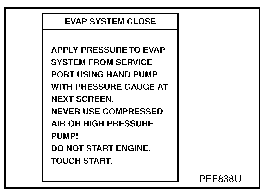 4. Select the "EVAP SYSTEM CLOSE" of "WORK SUPPORT MODE" with CONSULT-II.