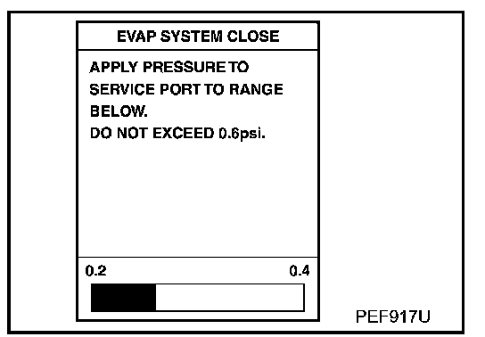 6. Apply positive pressure to the EVAP system until the pressure indicator reaches the middle of the bar graph.