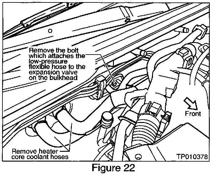 9. Remove the bolt which connects the low-pressure flexible hose to the low-pressure pipe (see Figure 21).
