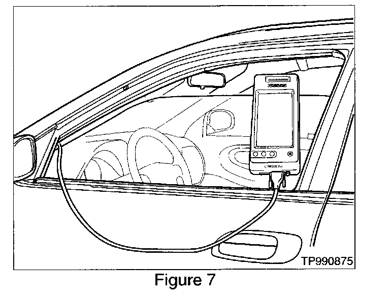 35. Roll down the driver's window part way, exit the vehicle, close the door and hang the CONSULT-II unit on the outside of the window (see Figure 7).