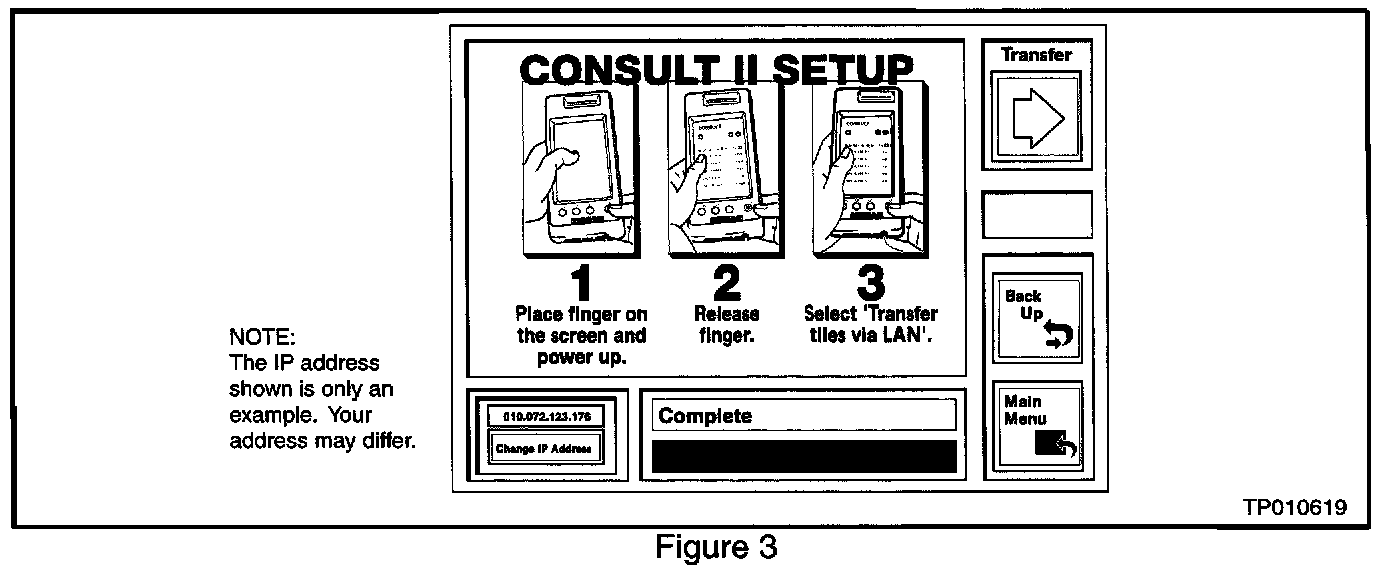11. When transfer is complete select the "Main Menu" button on ASIST. Turn off CONSULT-II and disconnect the AC power cord and the Ethernet cable from CONSULT-II.