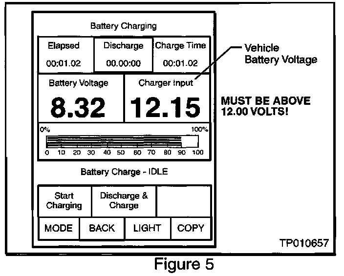 A. If the vehicle's battery charge ("Charger Input") is less than 12.0 volts: