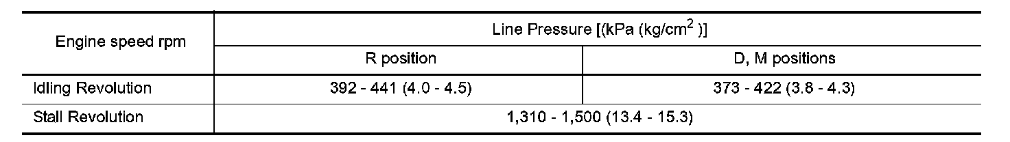 - When measuring the line pressure at the stall speed, refer to "STALL TEST".