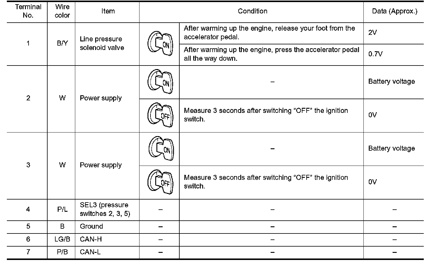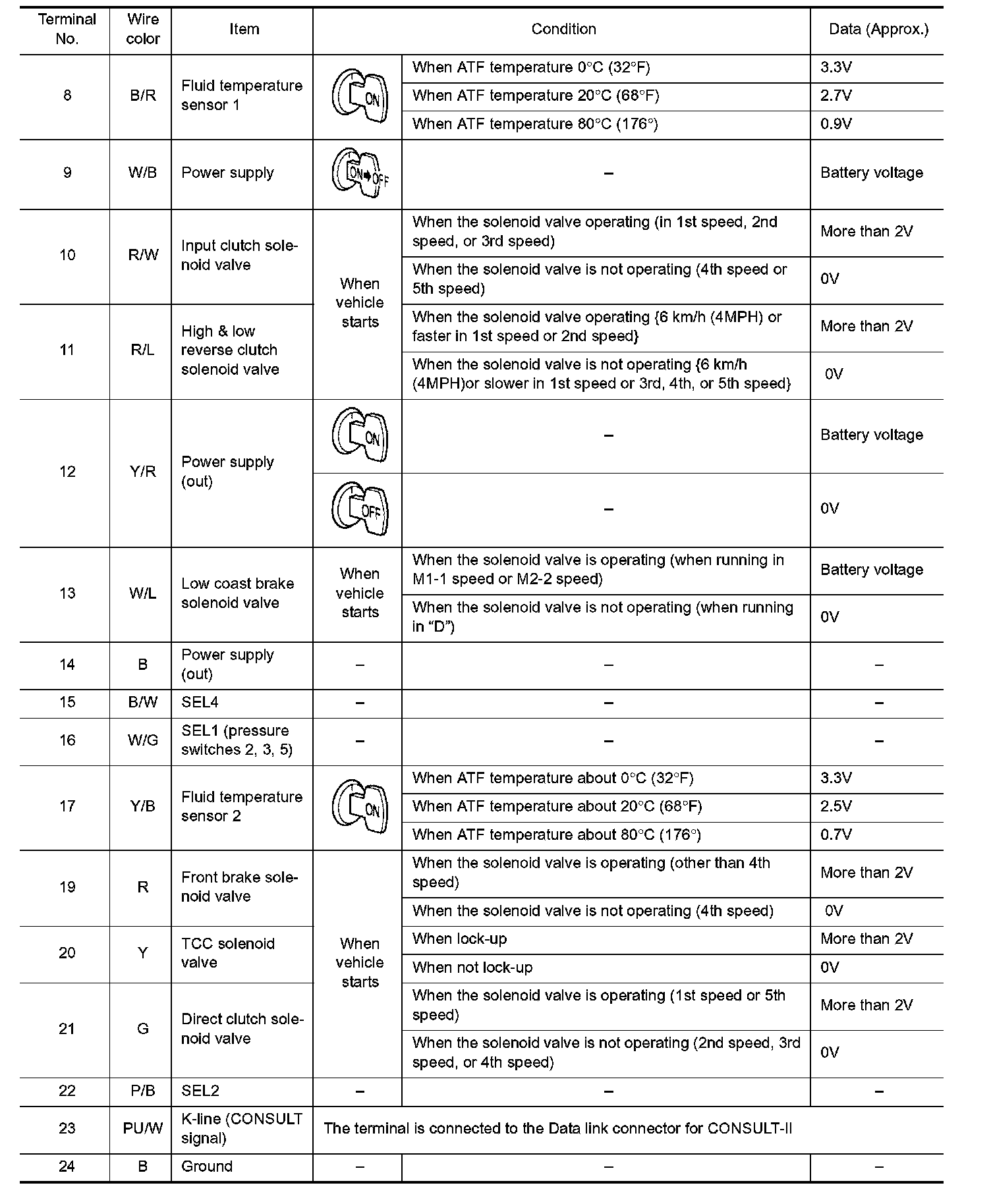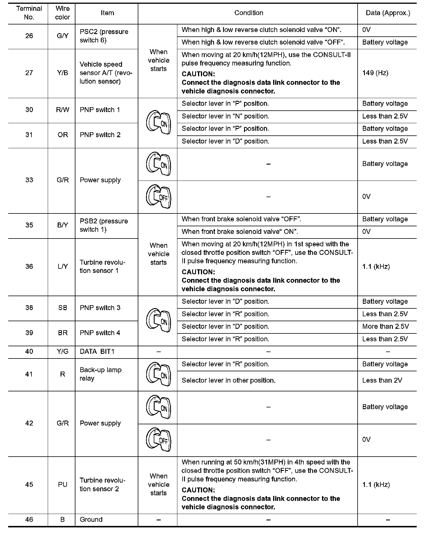 Pinout Values and Diagnostic Parameters