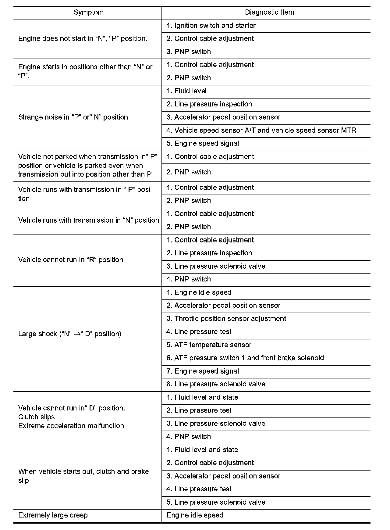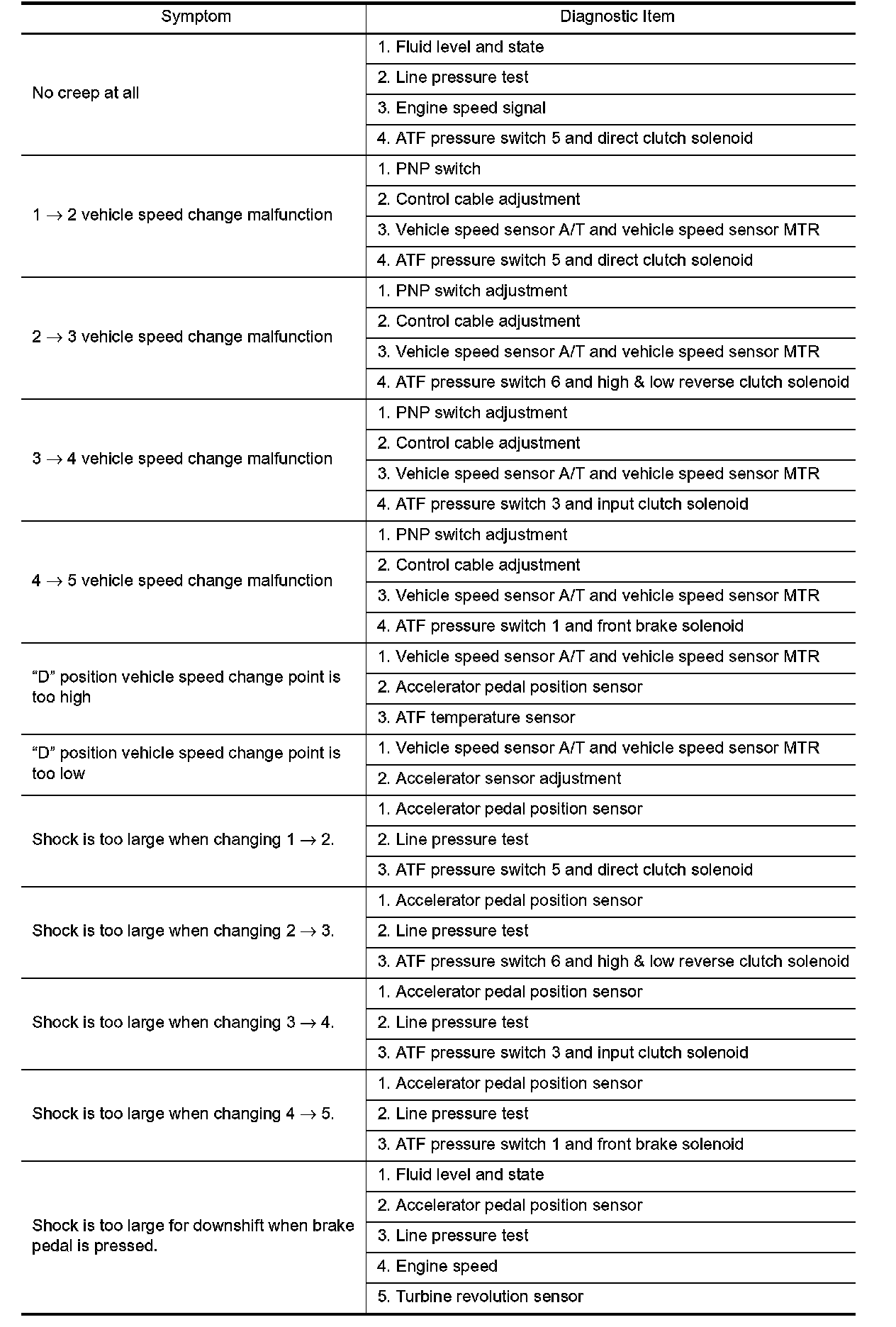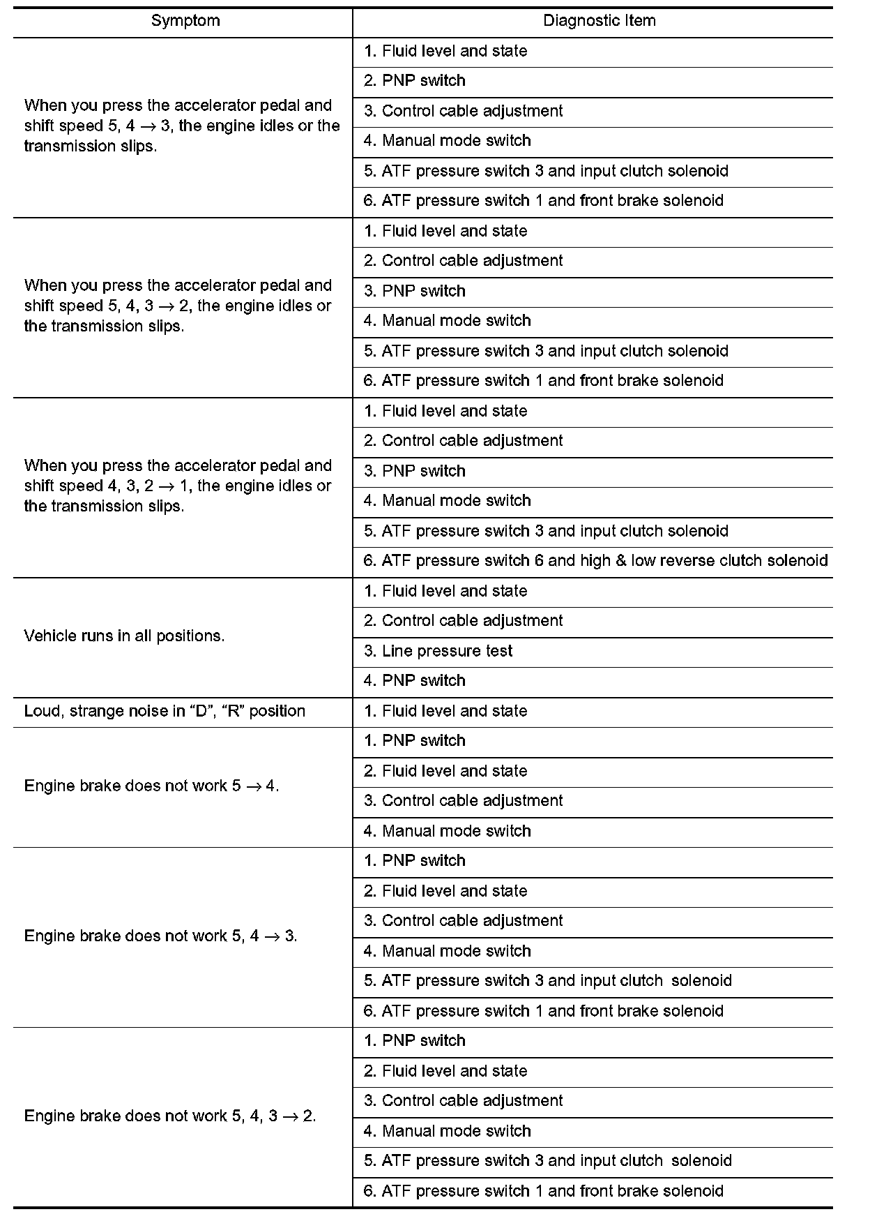- If a problem occurs in the RE5R05A transmission, replace the transmission assembly.