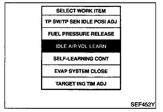 4. Select "IDLE AIR VOL LEARN" in "WORK SUPPORT" mode.