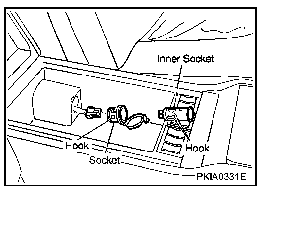 3. Remove inner socket and socket from the console finisher while pressing hook on inner socket.