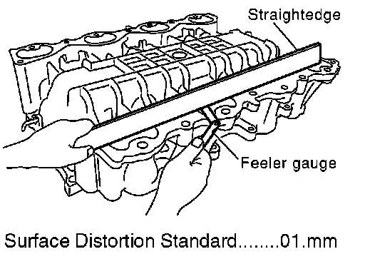 Using straightedge and feeler gauge, inspect surface distortion of intake manifold lower and intake manifold upper.