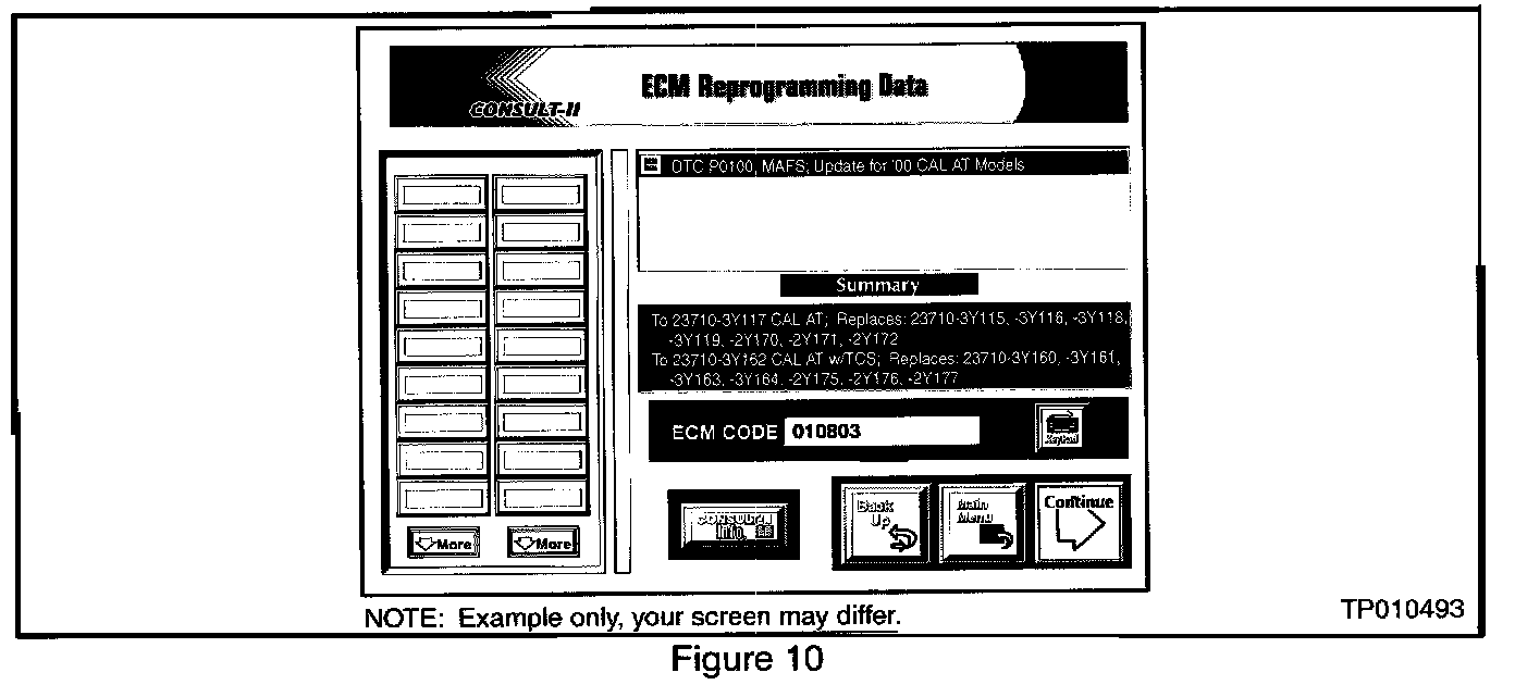 E. Click the "Continue" button on the ECM Data Reprogramming screen (see Figure 10) to proceed to CONSULT-II setup.