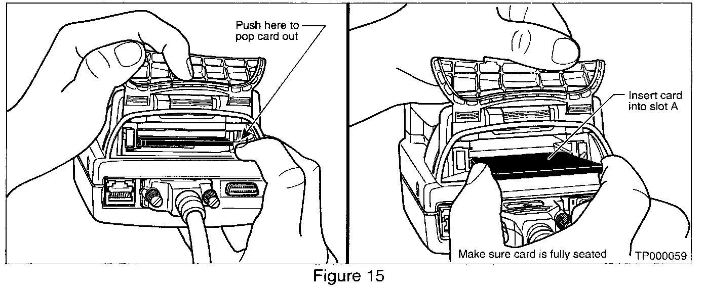14. Remove the ECM Reprogramming card from slot A of CONSULT-II and install the Diagnostics (blue) card into slot A (see Figure 15).