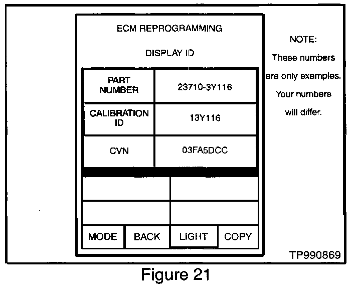 23. Press "CHECK CURRENT ECM P/N" to confirm the ECM part number on the vehicle to be reprogrammed (see Figure 21).