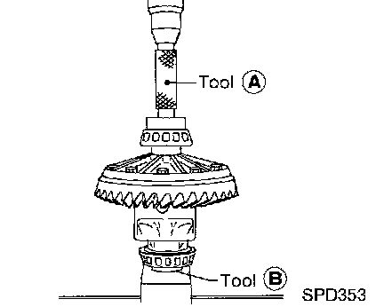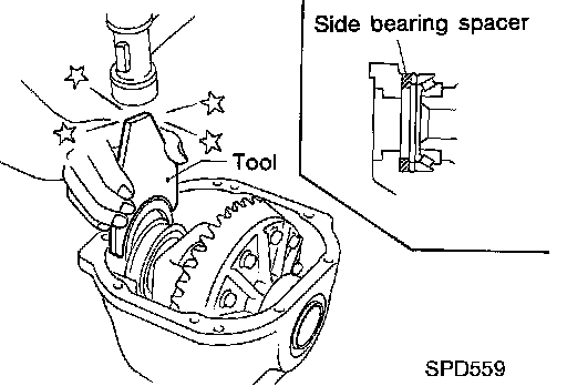 3. Press-fit side bearing inner cones on differential case with Tool.