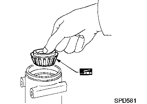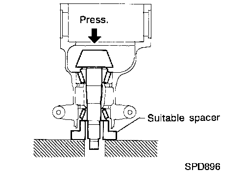 8. Set drive pinion assembly (as shown in figure) in differential carrier and install drive pinion, with press and suitable tool.