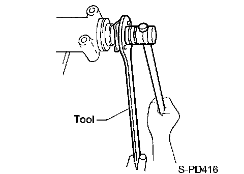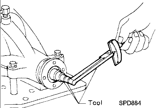 10. Install companion flange, and tighten pinion nut to specified torque with Tool. Ascertain that threaded portion of drive pinion and pinion nut are free from oil or grease.