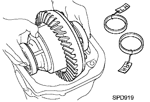 Never add or remove a different number of shims for each side. Difference in number of shims will change ring gear to drive pinion backlash.