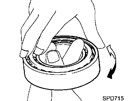 Check tapered roller bearing for smooth rotation. If damaged, replace outer race and inner cone as a set.