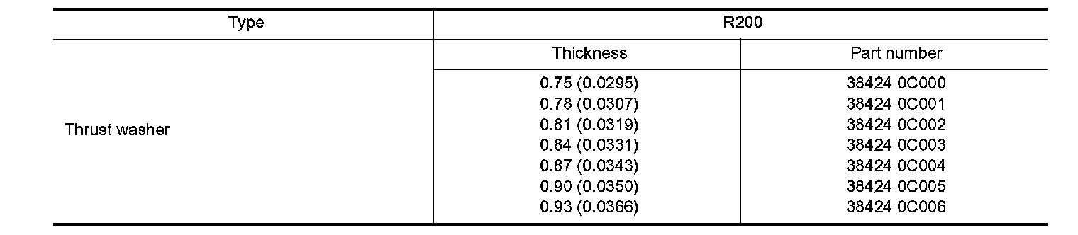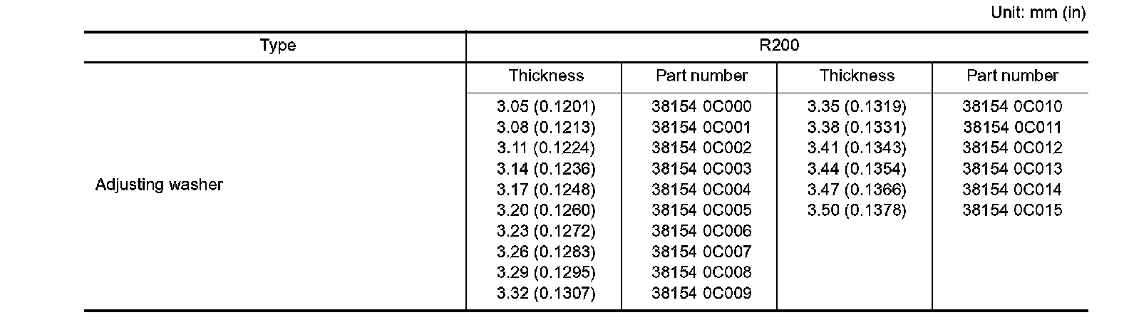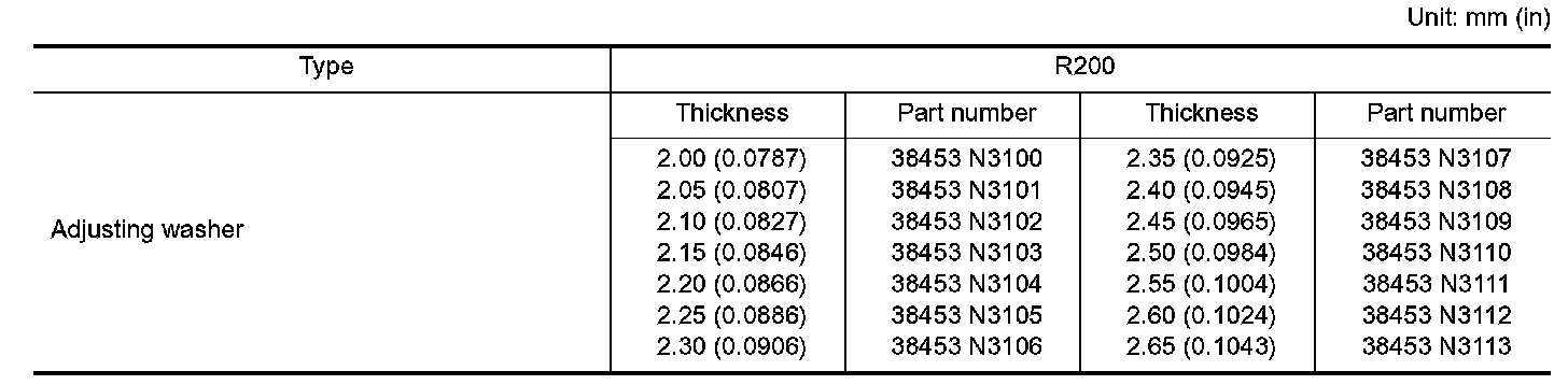 AVAILABLE PINION HEIGHT ADJUSTING WASHERS