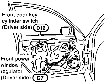 Front Door Key Cylinder Switch (Driver Side), Front Power Window Regulator (Driver Side):