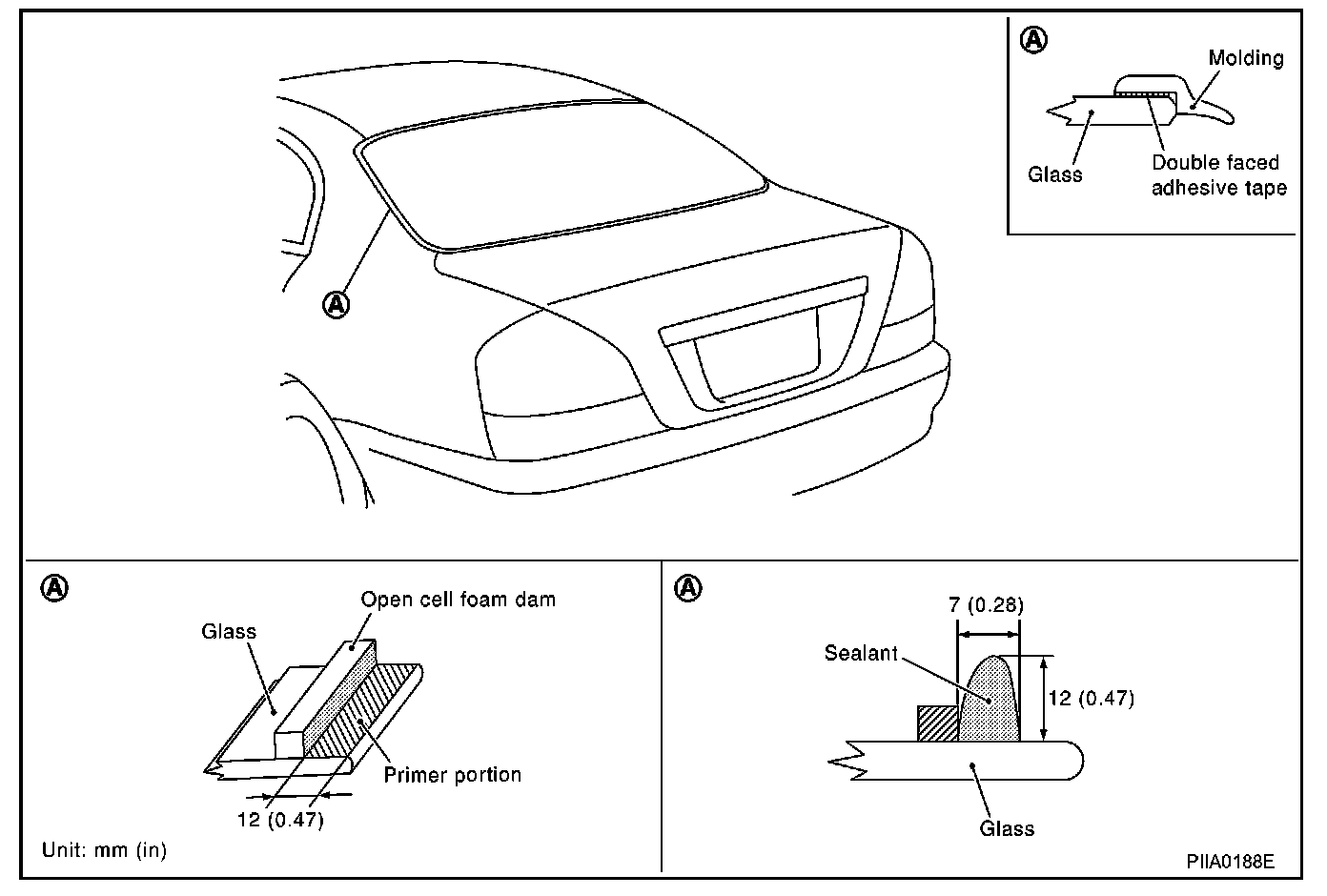 CAUTION: When a windshield glass is reused, do not use a cutting knife or power cutting tool.