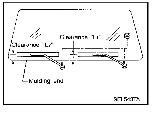 4. Ensure that wiper blades stop within clearance "L1" and "L2".
