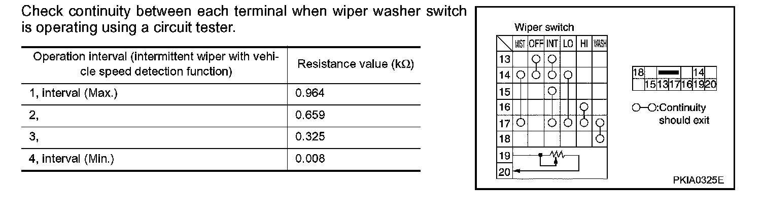 Wiper And Washer Switch Circuit Check (Inspection Of Switch Circuit):