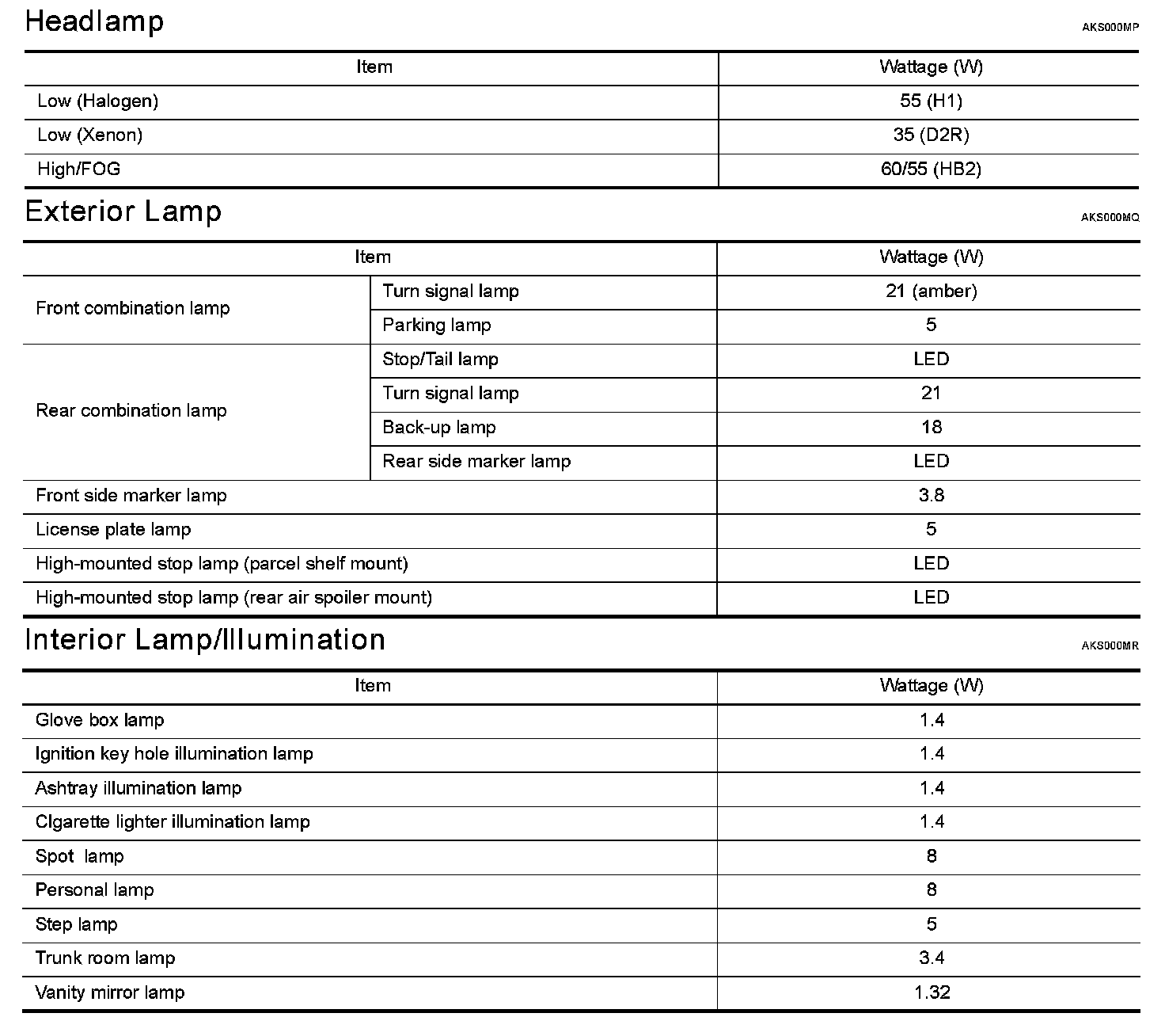 Lighting and Horns: Specifications