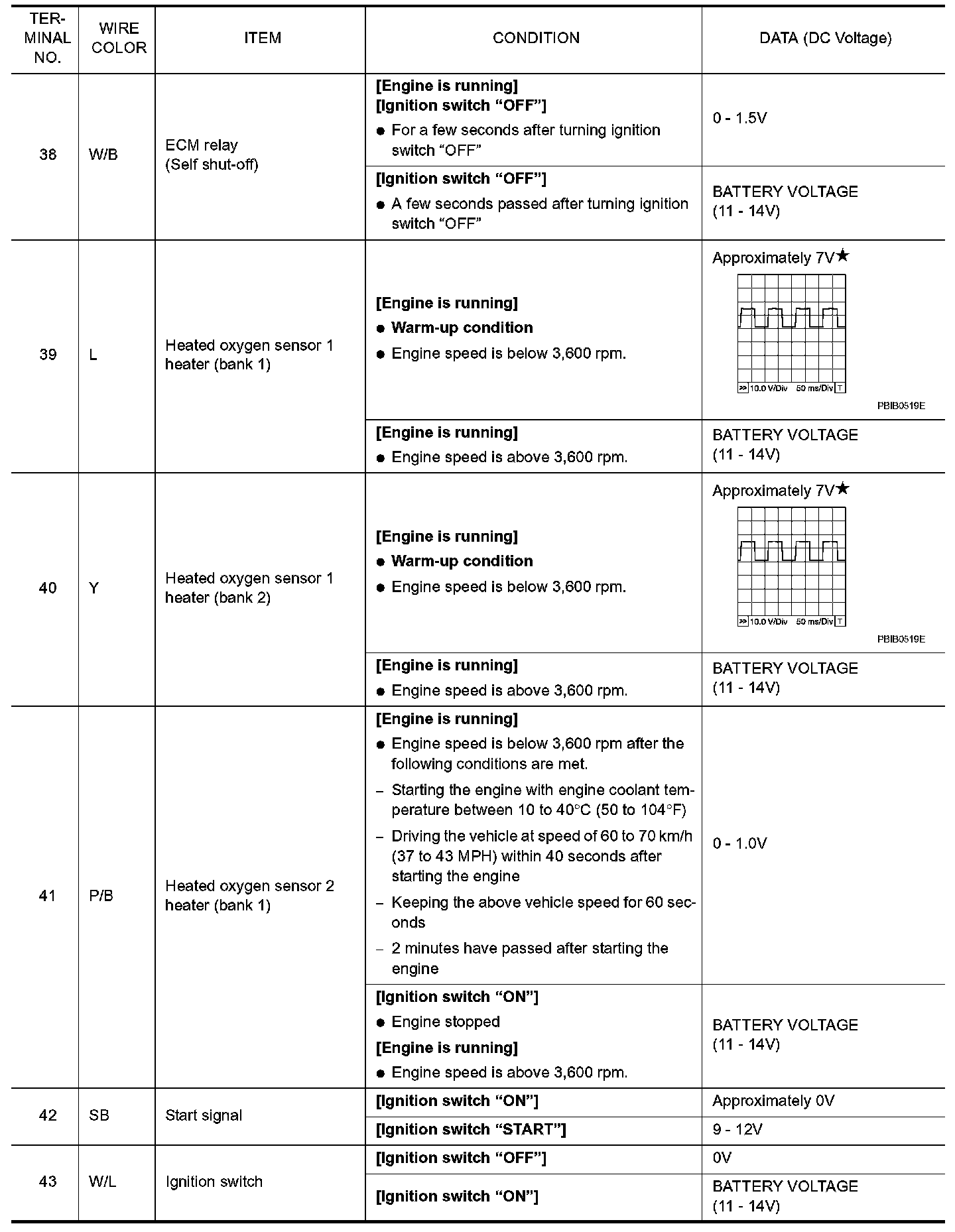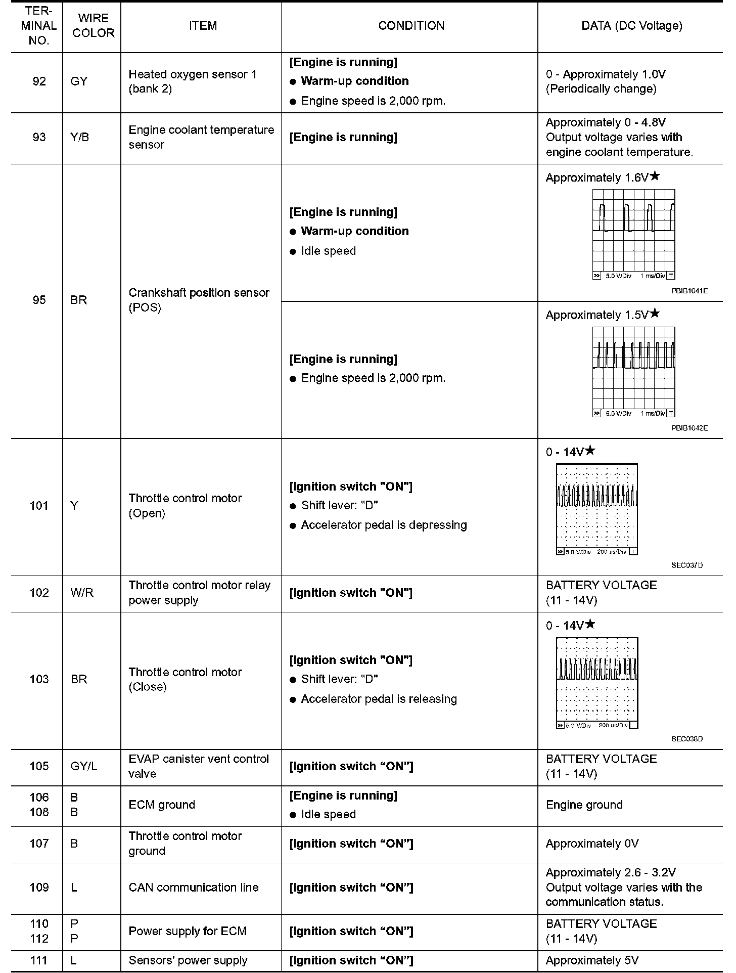 Specification data are reference values and are measured between each terminal and ground.
