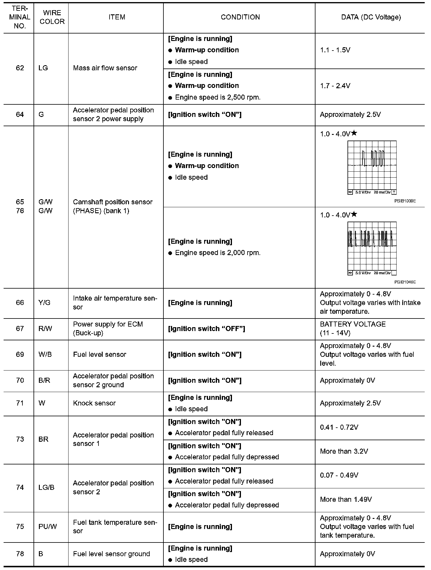 Pulse signal is measured by CONSULT-II.