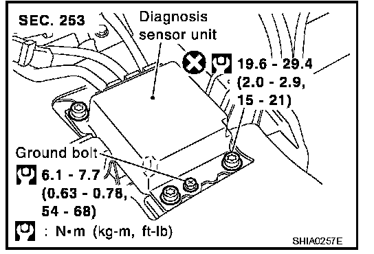 After replacing the diagnosis sensor unit, confirm that the diagnosis sensor unit identification is correct for the vehicle as equipped. Refer to "DIAGNOSIS MODE FOR CONSULT-II". Diagnostic Modes