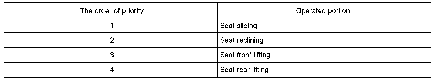 3. The driver's seat position (see the Table) operates in the order of priority.