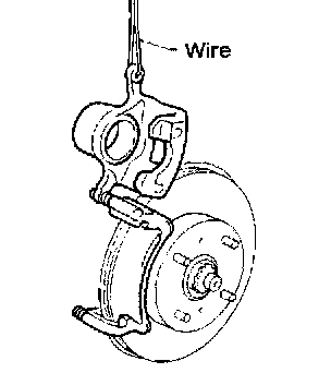 It is not necessary to remove connecting bolt except for disassembly or replacement of caliper assembly. In this case, suspend cylinder body with wire so as not to stretch brake hose.
