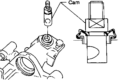 3. Fit push rod into square hole in key plate. Also match convex portion of key plate with concave portion of cylinder.