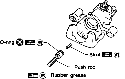 2. Generously apply rubber grease to strut and push rod to make insertion easy.