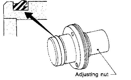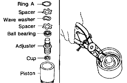 2. Pry off ring A from piston with suitable pliers and remove adjusting nut.